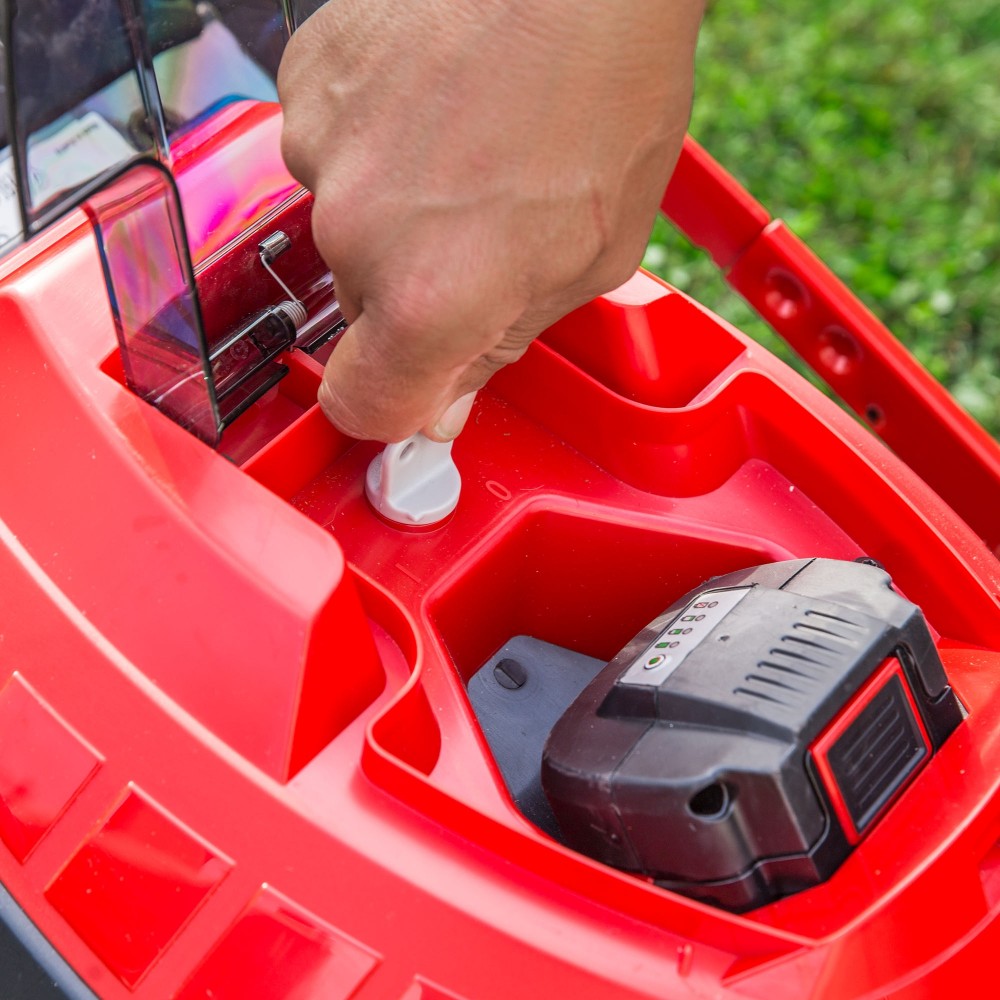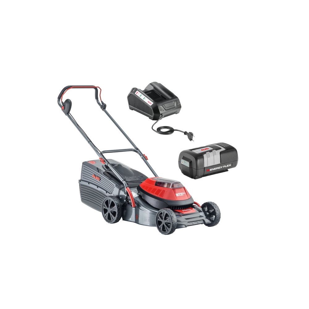Bezpečný štart vďaka štartovnému kľúču. Li-Ion batérie s napätím 40V účinne a efektívne fungujú na trávnatých plochách do 400 m². Vďaka inovatívnemu batériovému článku je táto batéria mimoriadne výkonná, s dlhou životnosťou a bez pamäťového efektu. Integrované LED kontrolky meniace stav nabitia batérie. Dĺžka nabíjacieho cyklu je asi 1,5 hodiny. Výšku kosenia môžete nastaviť centrálne v 7 polohách od 30 mm do 75 mm. Zberný kôš o veľkosti 65 l a aerodynamické prúdenie vzduchu potrebné efektívne vyhadzuje a skvele zbiera pokosenú trávu, ktorá je vďaka tomu dopravovaná až do zadnej časti koša. Ergonomický tvarovaná rukoväť a kolesá uložené v guličkových ložiskách zaisťujú pohodlnú prácu.