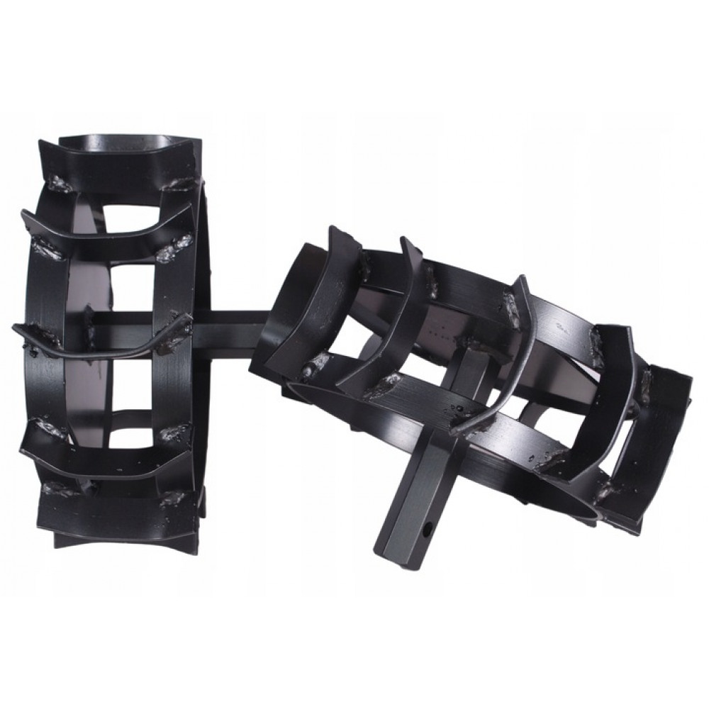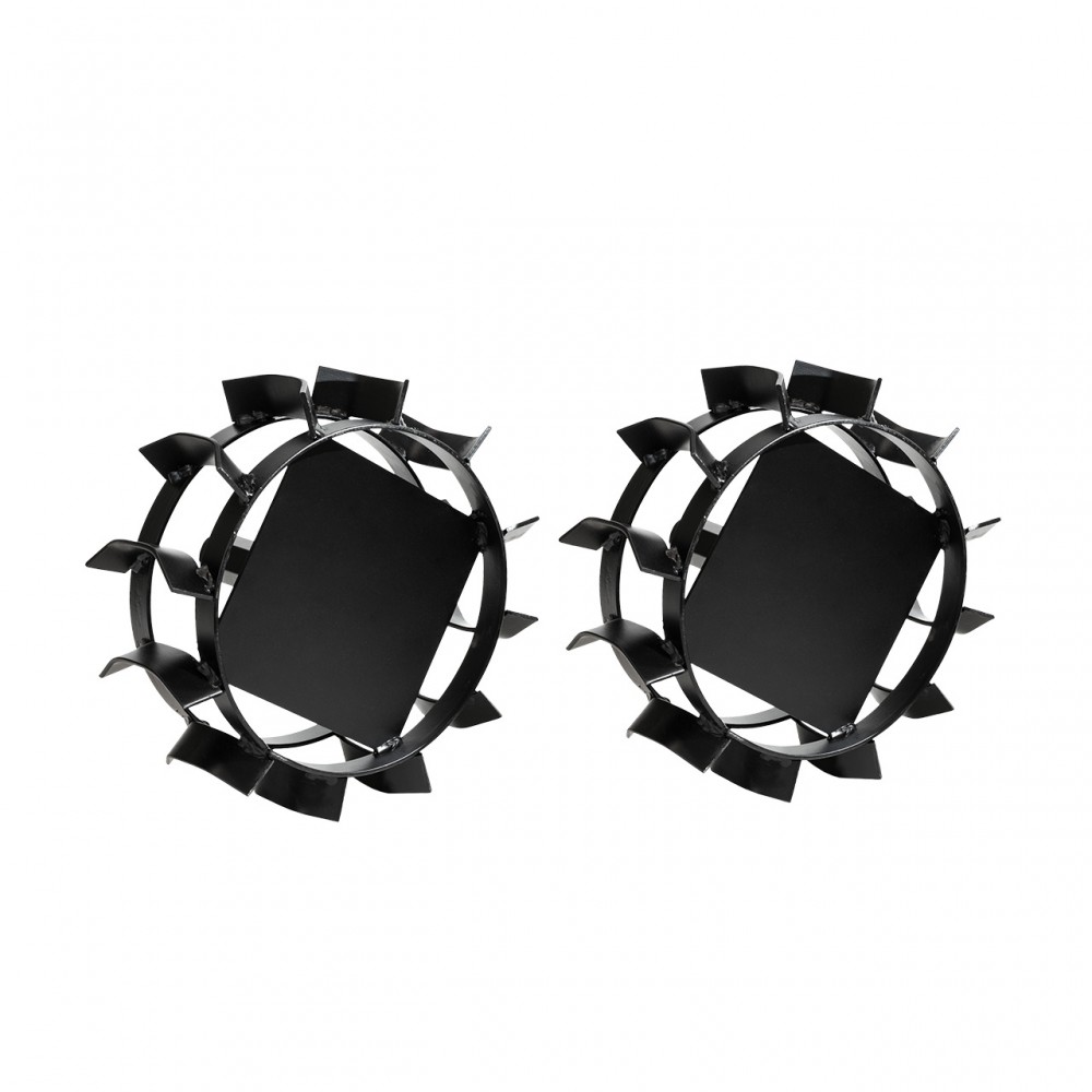 Sada oceľových kolies namontovaná namiesto okopávacích nástrojov poskytuje výrazne lepšiu trakciu pri používaní pluhov. Je stabilný, odolný, trvácny a odporúča sa najmä na časté používanie v náročných pôdach. Pevne vyrobené z lakovaného oceľového plechu.