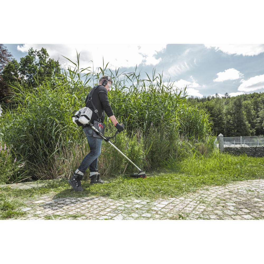 Tento krovinorez s veľmi výkonným dvojtaktným motorom s výkonom 1,9 kW najnovšej generácie poskytuje dostatok výkonu. To znamená, že môžete prejsť v akomkoľvek teréne - či už na veľkých trávnikoch, vo vysokej tráve, na živých plotoch alebo v podraste.