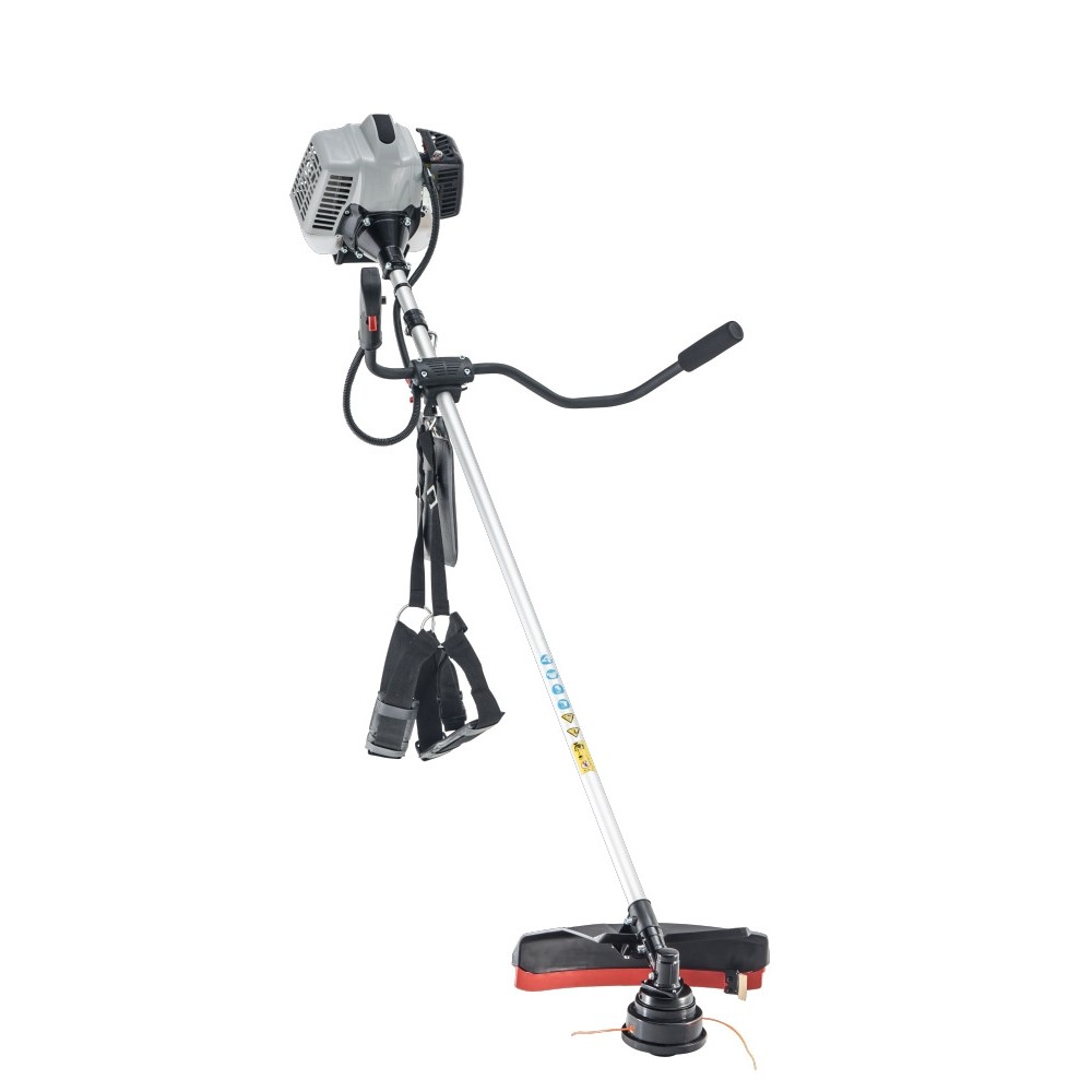 Krovinorez je vybavený bicyklovou rukoväťou a popruhom na plecia.